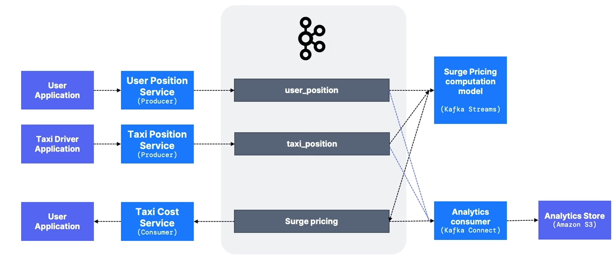 surge_pricingtopic- Computed by a Kafka Streams application.