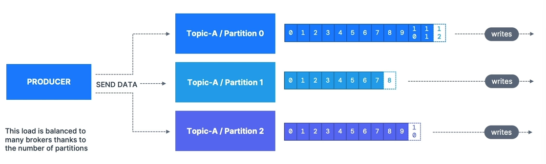 key=null, data is sent round robin (partition 0, then 1, then 2…) - If