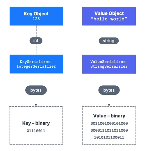 - Kafka only accepts bytes as an input from producers and sends bytes out as an output to consumers