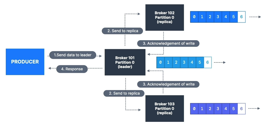 - Leader response is requested, but replication is not guaranteed as it happens in the background