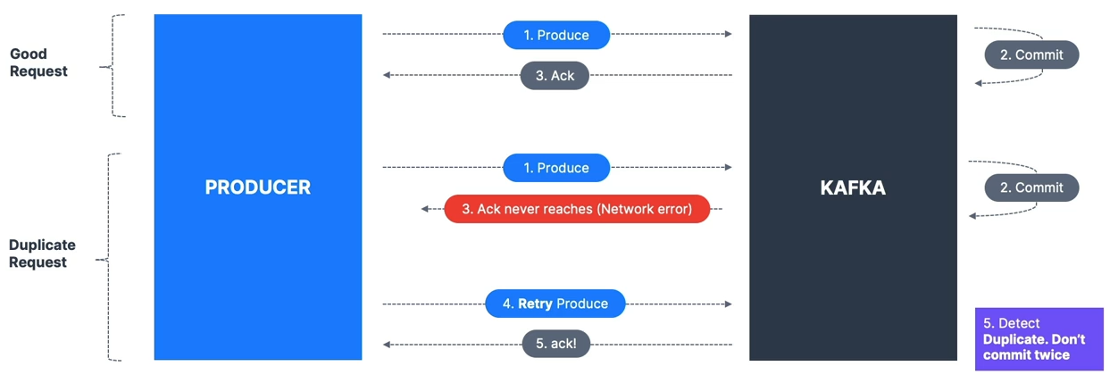 Kafka ≥ 0.11: can define an idempotent producer to prevent duplicates on network errors